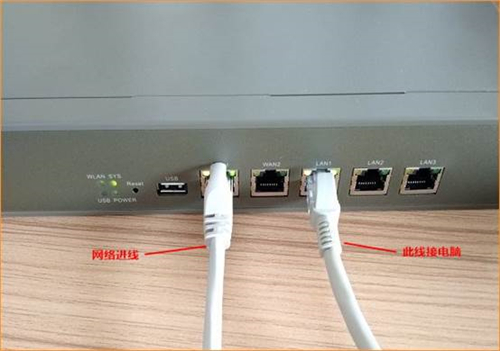 入户的网线接路由器的WAN口(WAN 1或者WAN 2),另一根网线,一头接电脑,一头接路由器LAN1/LAN2/LAN3任意接口,接线方式如下图: